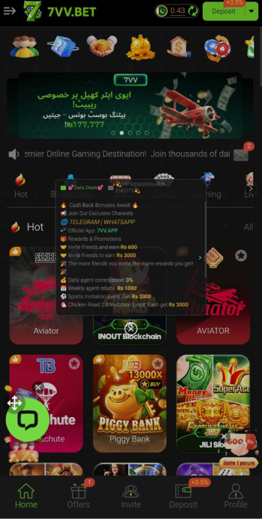 7vv.bet Game is a modern online platform and casino gaming website designed for players who want to enjoy fast gameplay, need secure transactions, and wish to vail diverse earning opportunities. Game offers its user-friendly interface and numerous range of popular casino games, 7vv.bet is quickly gaining popularity among online gaming users and players across. The Game APP supports smooth performance on both Android devices and web browsers, making it easy for users to play anytime and anywhere in Pakistan
